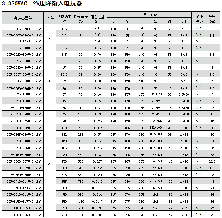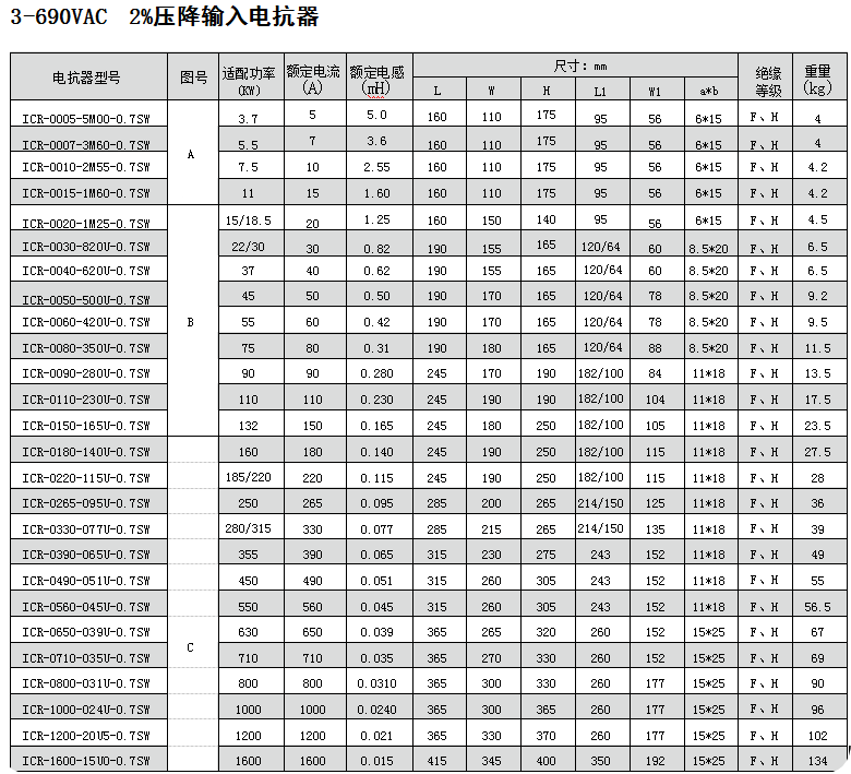 安裝在變頻器輸出端,用于限制變頻器與電機連接電纜的容性充電電流,鈍化變頻器輸出的PWM波的電壓上升率。電機電纜長度超過一定值時,建議在變頻器與電機之間插入一個電機電抗器用于補償在長導線時的電容再充電電流。此長度決定于變頻器的額定值以及電機電纜的類型。