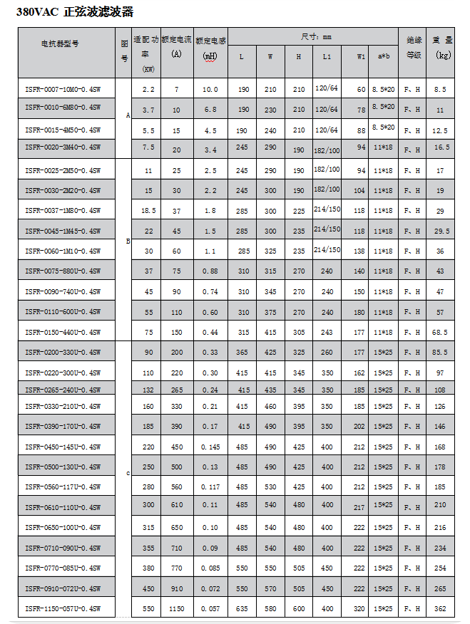 正弦波濾波器是在PWM變頻器驅(qū)動下,其開關(guān)頻率范圍在2-8kHz之間仍提供正弦波輸出電壓。在變頻器驅(qū)動應(yīng)用中,這種濾波器可以消除電機(jī)絕緣失效問題并通過消除與變頻器輸出波形相關(guān)的高dv/dt來減少電磁干擾。改善電機(jī)的性能和壽命,延長變頻器輸出距離,最長可達(dá)3KM。為保護(hù)電線電纜,使用正弦波濾波器可防止長引線驅(qū)動電機(jī)的過電壓問題。在其他能源應(yīng)用下,比如風(fēng)力發(fā)電機(jī),逆變器將電力通過升壓變壓器還原到實(shí)用的配電系統(tǒng),這種濾波器可以允許使用標(biāo)準(zhǔn)變壓器。滿載并在60Hz時(shí)給變壓器輸入的諧波電壓畸變是5%的話,那么滿載時(shí)給電機(jī)輸入的諧波電壓畸變一般就是5%。